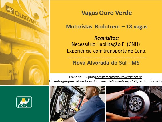 18 VAGAS - MOTORISTA RODOTREM: