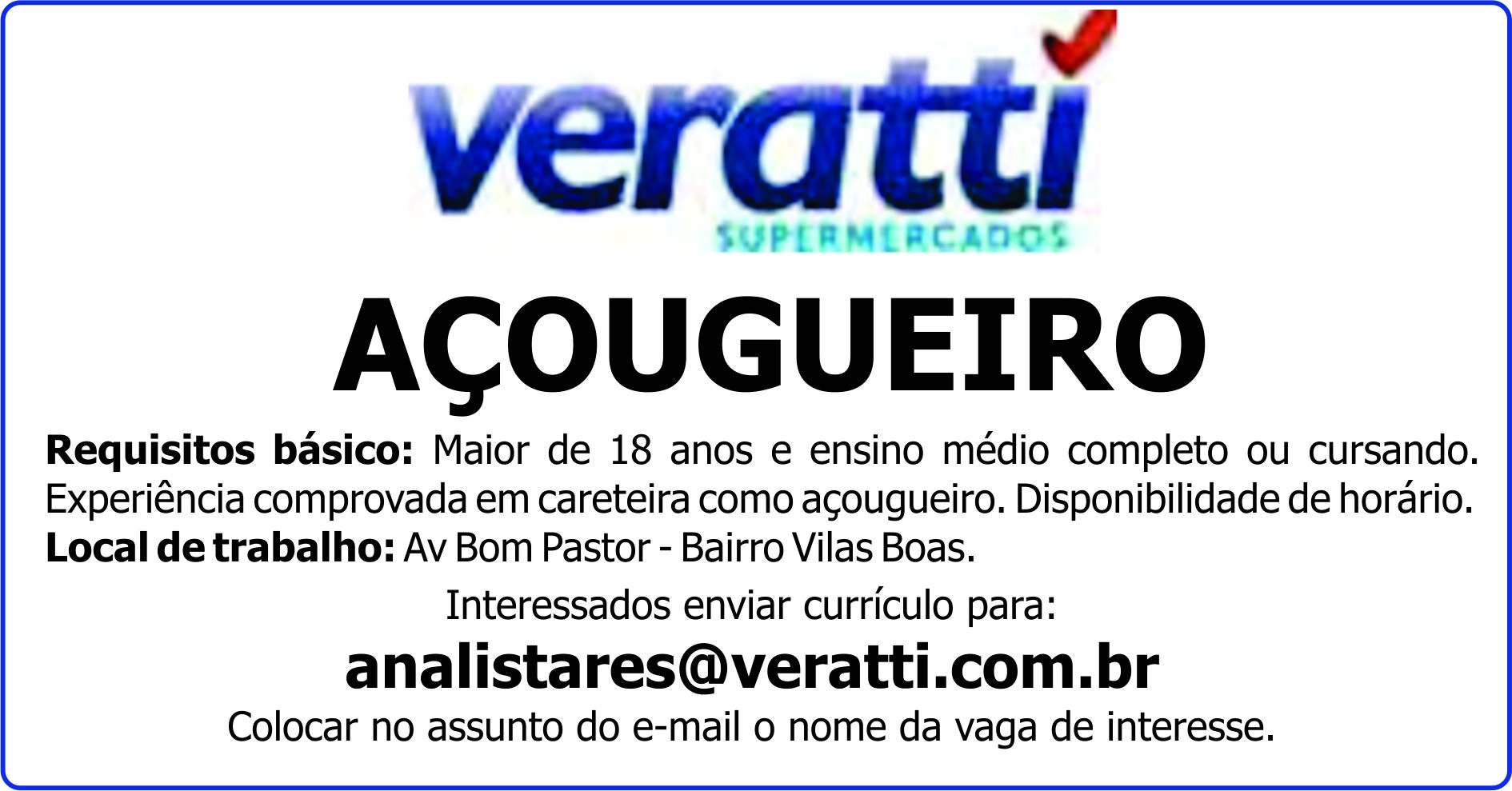 Requisitos básico: Maior de 18 anos e ensino médio completo ou cursando. Experiência comprovada em careteira como açougueiro. Disponibilidade de horário.