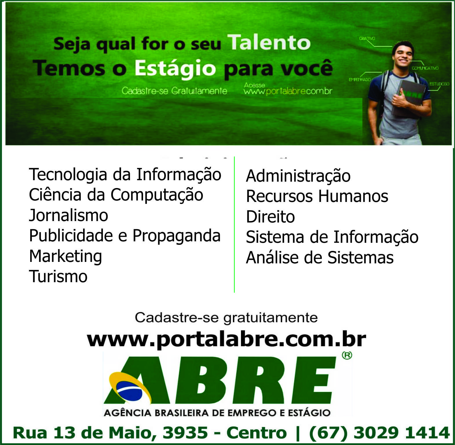 Interessados deverão cadastrar o currículo no site: www.portalabre.com.br