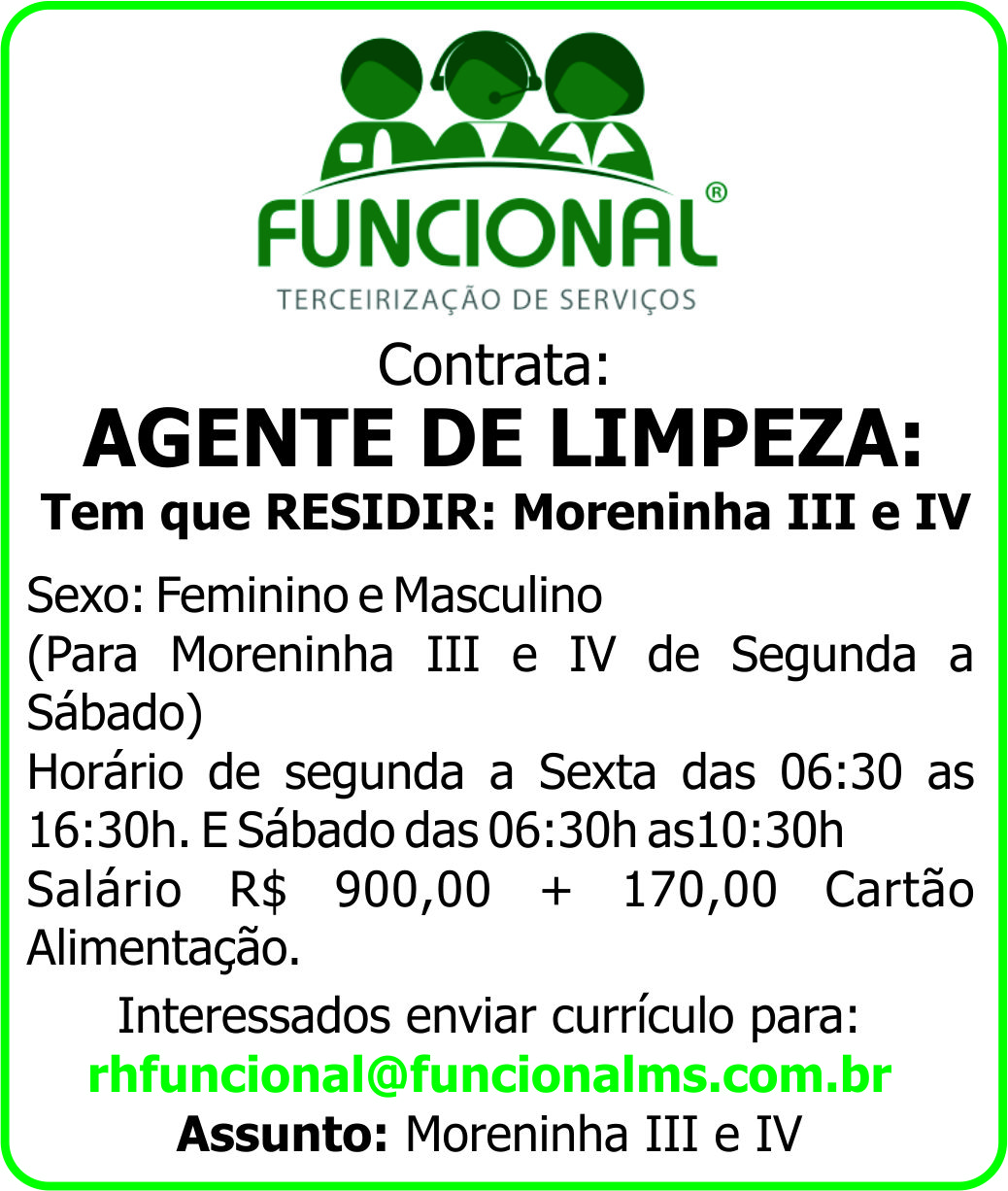 Salário R$ 900,00 + 170,00 Cartão Alimentação. Enviar currículo:
