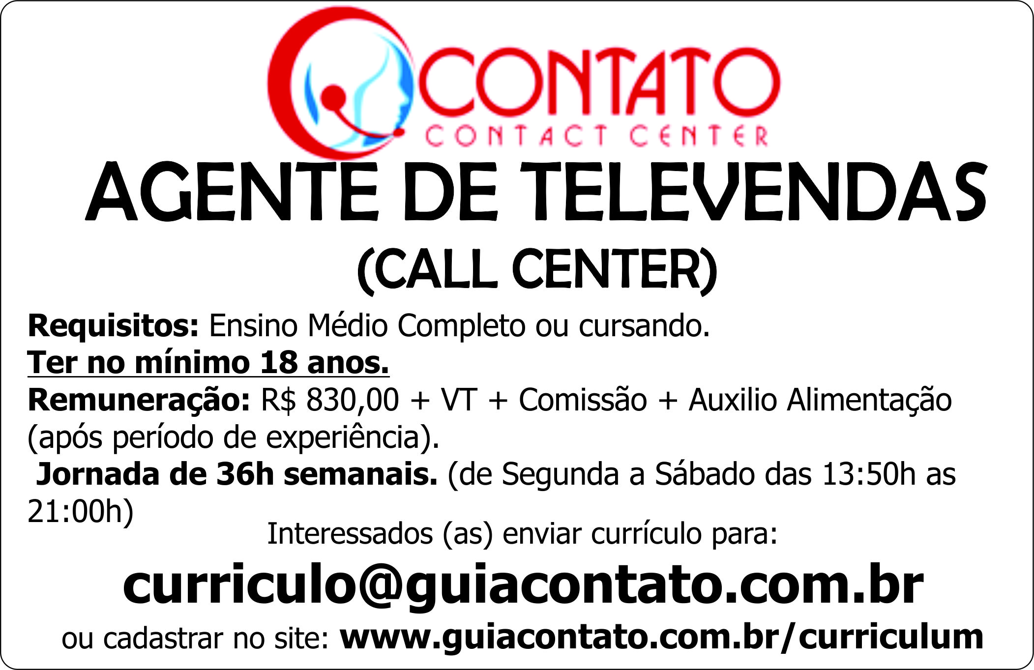 ou cadastrar no site: www.guiacontato.com.br/curriculum