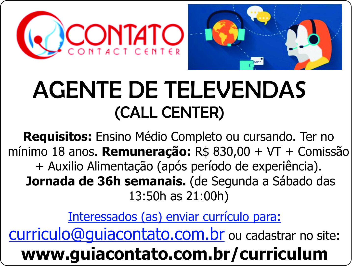 Agente de Televendas (Call Center - 13:50h as 21:00h):