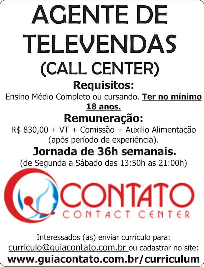 [email protected] ou cadastrar no site: www.guiacontato.com.br/curriculum