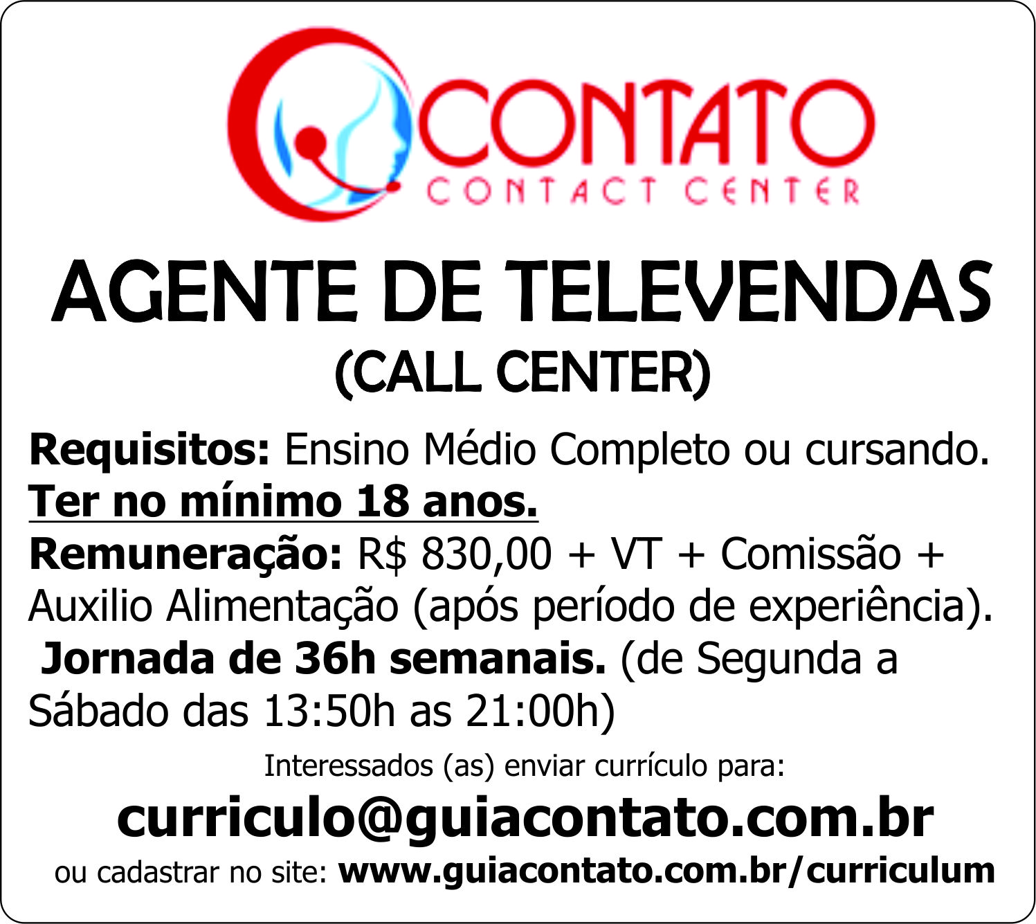 ou cadastrar no site: www.guiacontato.com.br/curriculum
