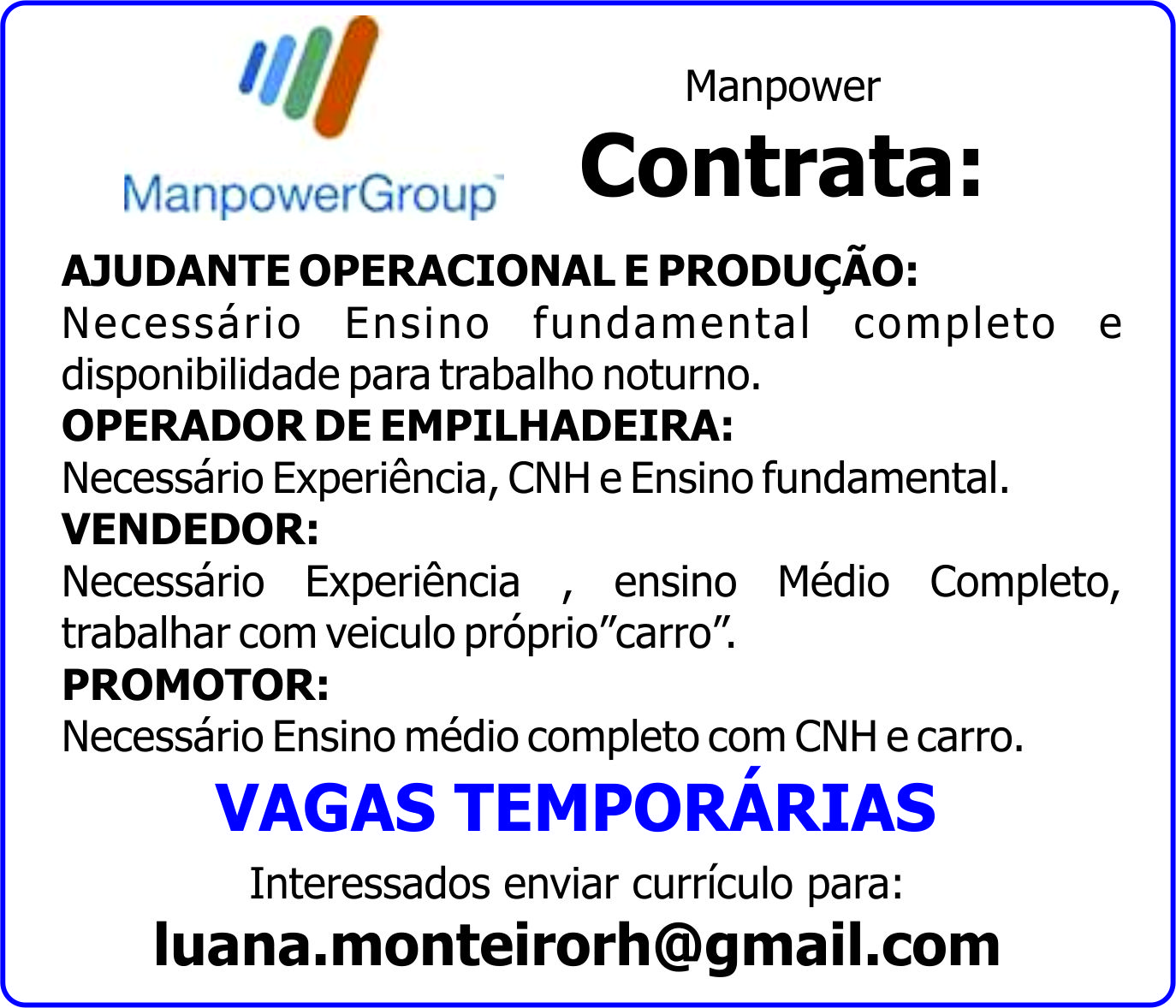VAGAS TEMPORÁRIAS