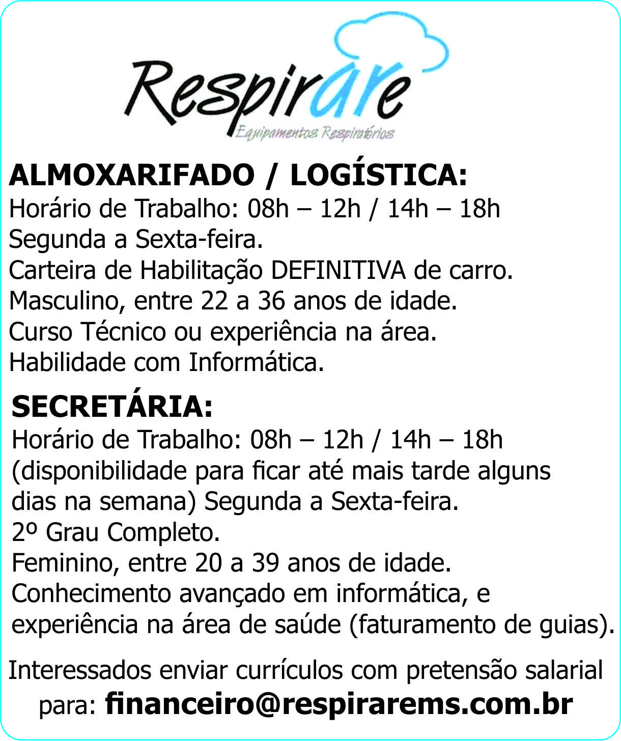 para: [email protected] Enviar currículo: