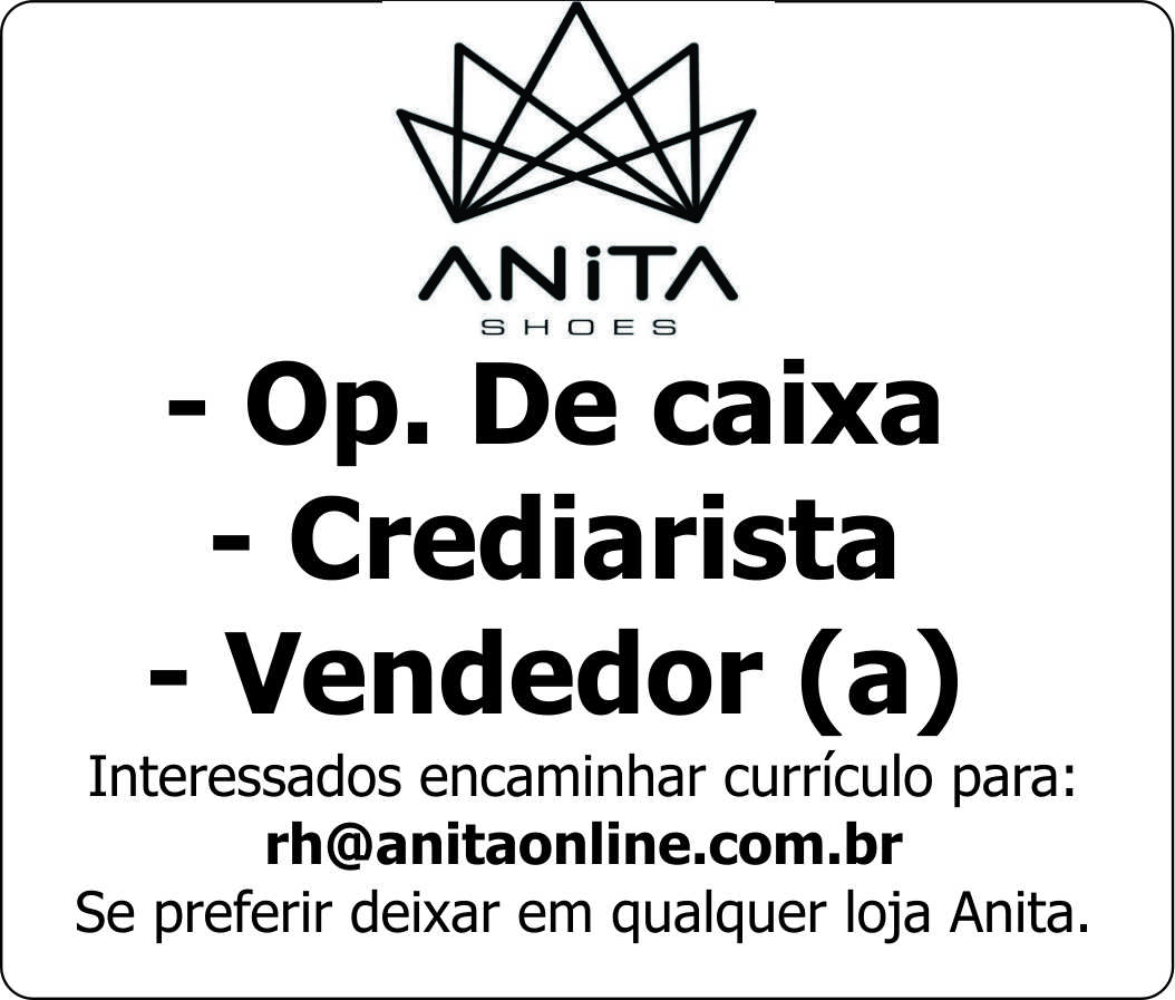 Anita Shoes - Operador de Caixa / Crediarista / Vendedor (A)