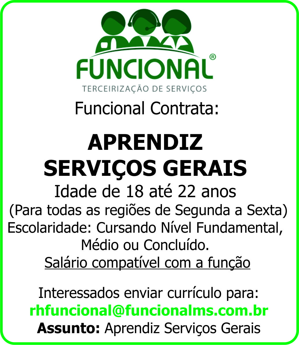 APRENDIZ SERVIÇOS GERAIS: