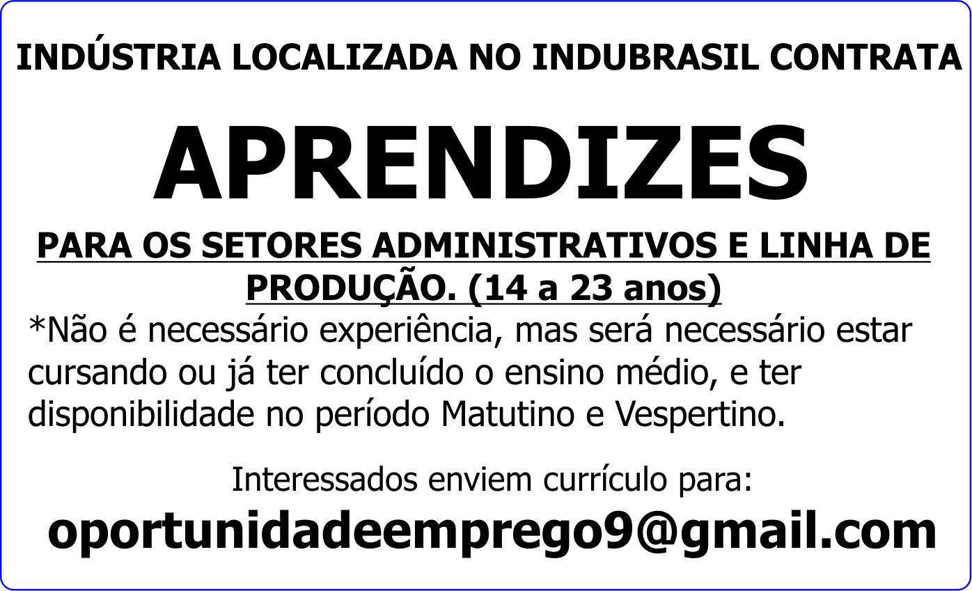 APRENDIZES PARA OS SETORES ADMINISTRATIVOS E LINHA DE PRODUÇÃO. (14 a 23 anos):