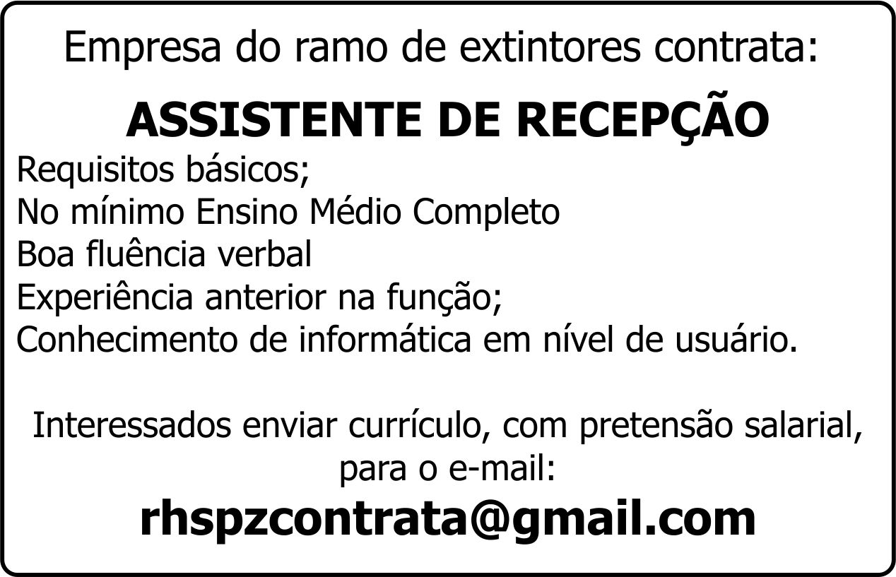 Interessados enviar currículo, com pretensão salarial, para o e-mail: [email protected]