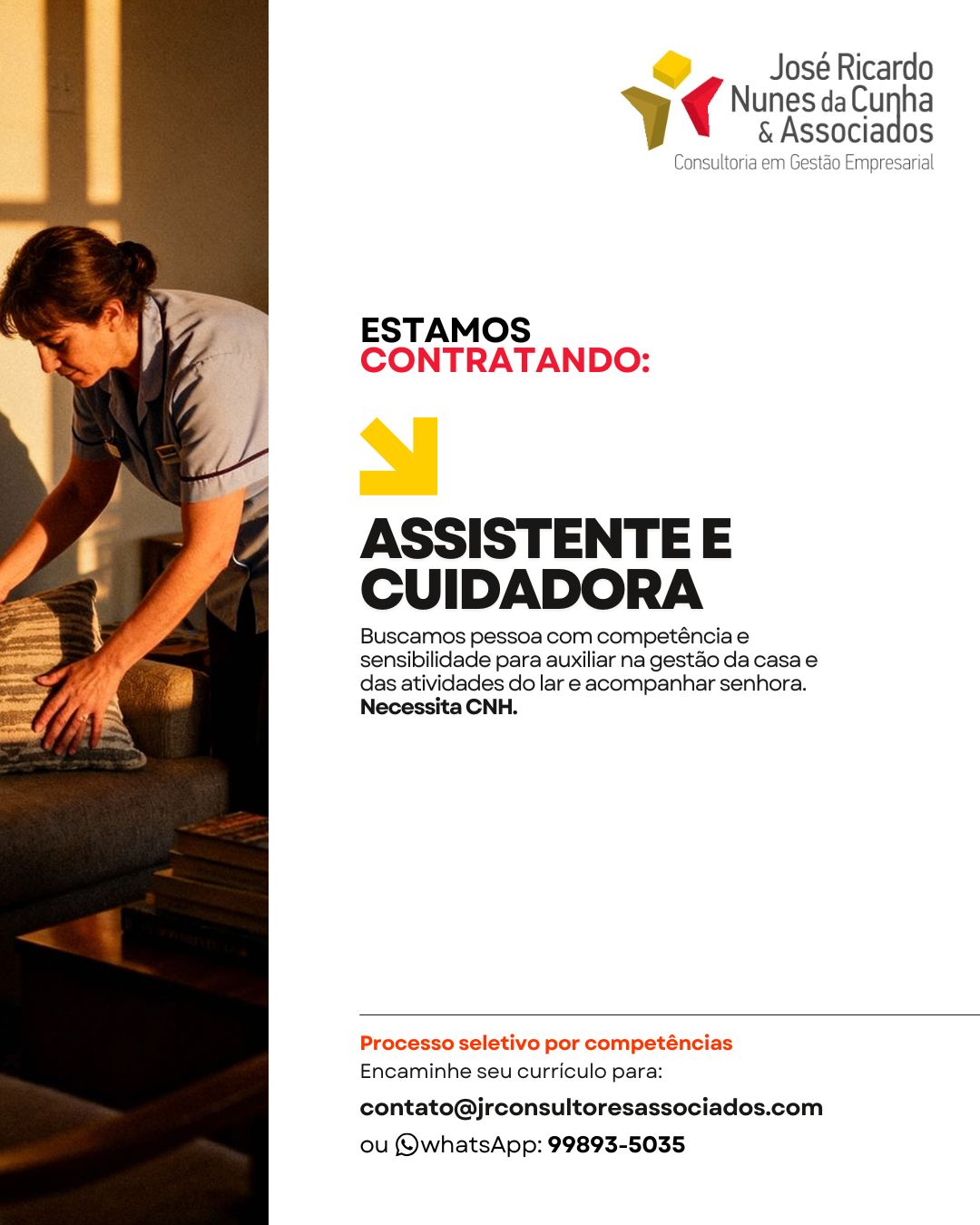BUSCAMOS PESSOA COM COMPETÊNCIA E SENSIBILIDADE PARA AUXILIAR NA GESTÃO DA CASA E DAS ATIVIDADES DO LAR E ACOMPANHAR SENHORA.