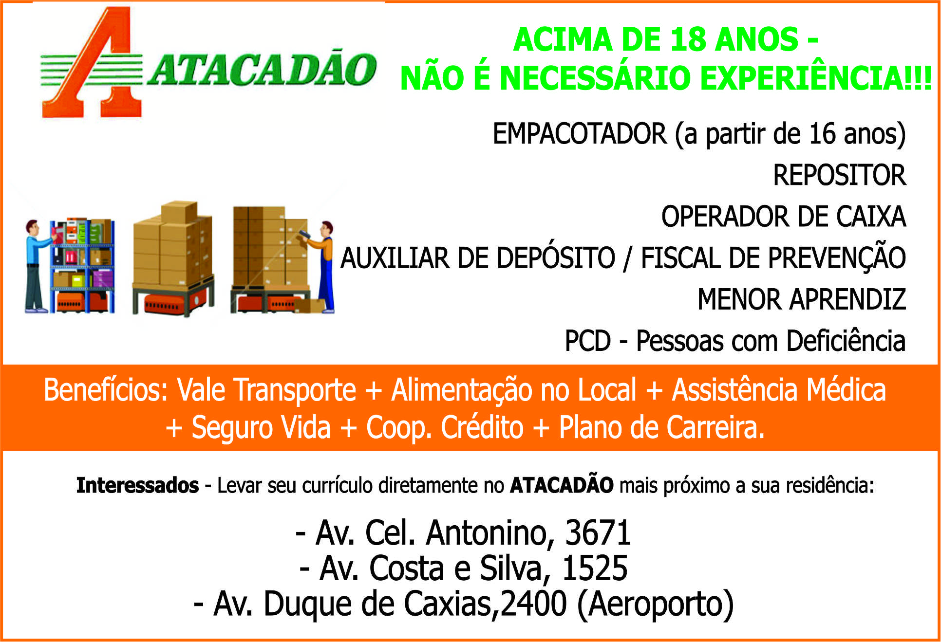 Atacadão contrata acima de 18 anos - Não é necessário experiência!!