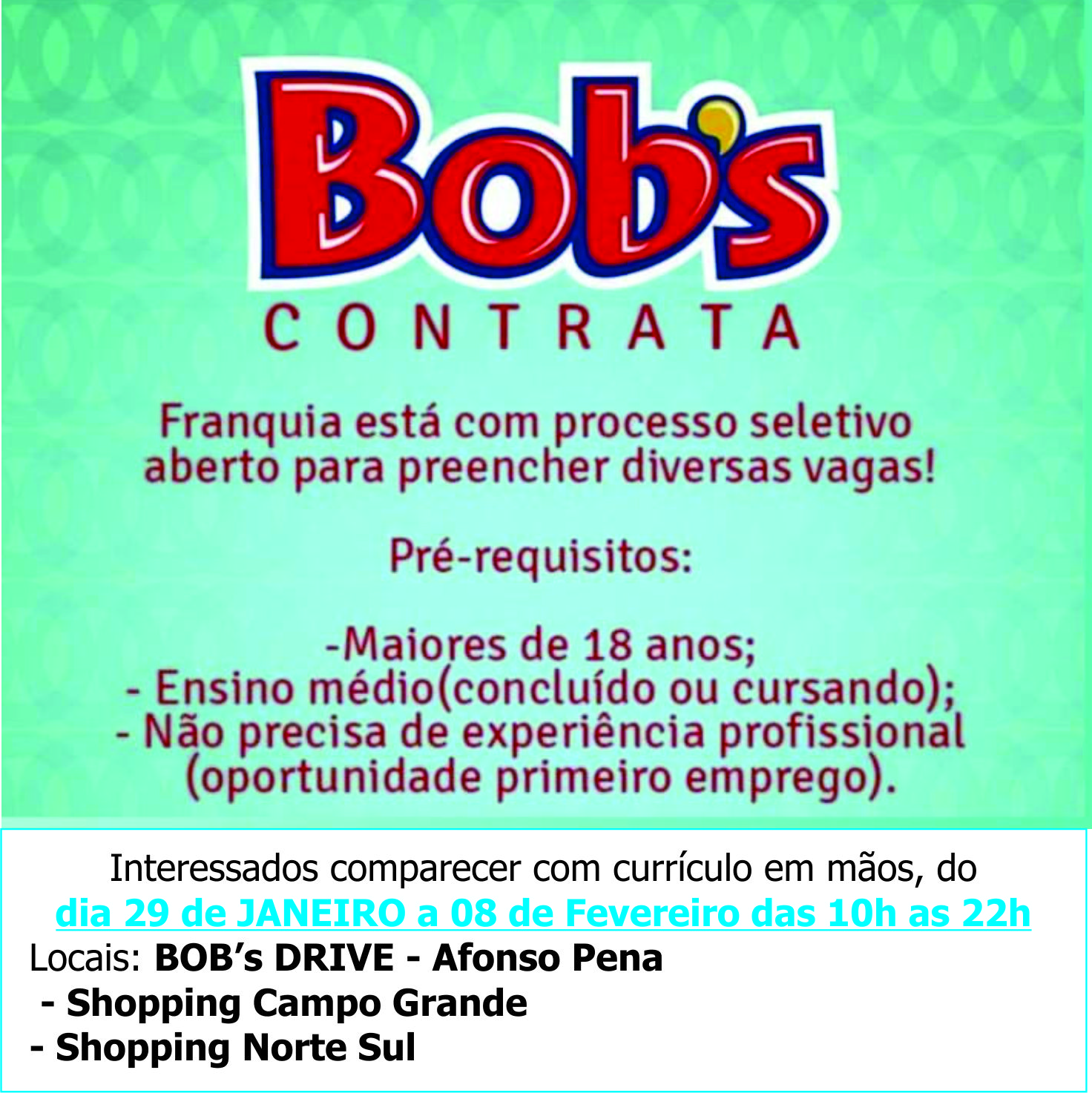 Interessados comparecer com currículo em mãos,