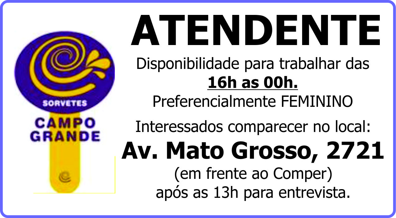 Av. Mato Grosso, 2721 (em frente ao Comper) após as 13h para entrevista.