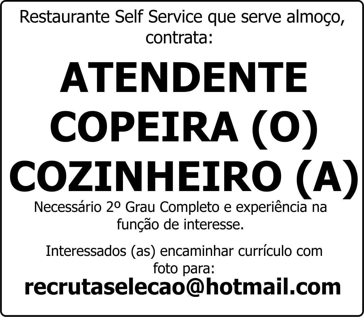 ATENDENTE / COPEIRA (O) / COZINHEIRO (A):