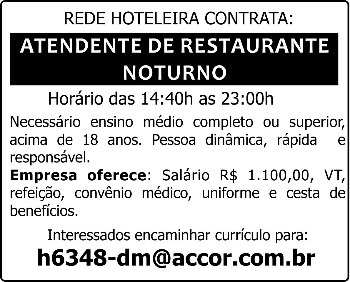 Empresa oferece: Salário R$ 1.100,00, VT, refeição, convênio médico, uniforme e cesta de benefícios. Enviar currículo: