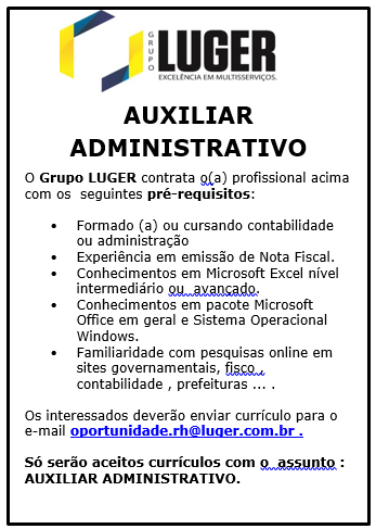 SÓ SERÃO ACEITOS OS CURRÍCULOS QUE NO ASSUNTO ESTEJA ESCRITO: