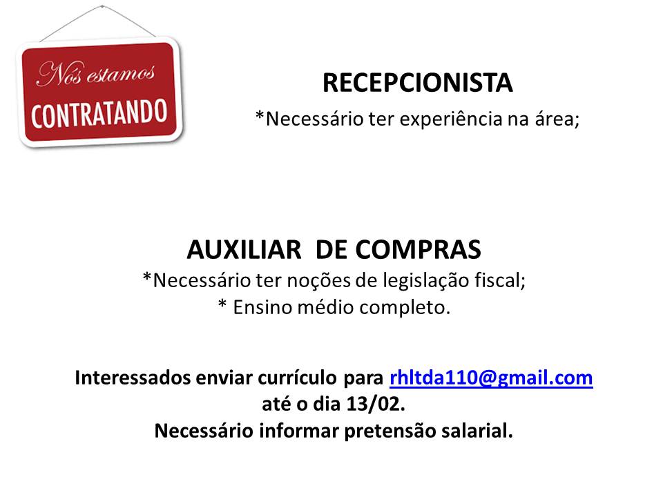 AUXILIAR DE COMPRAS e RECEPCIONISTA: