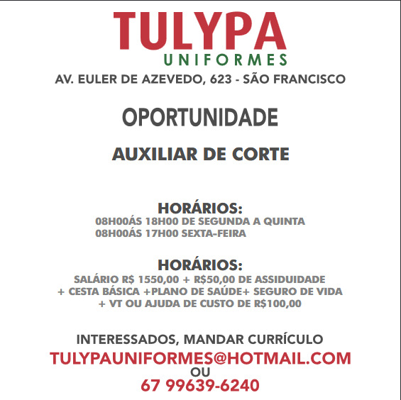 Interessados (as) encaminhar currículo para: [email protected] ou através do telefone (67) 99639-6240