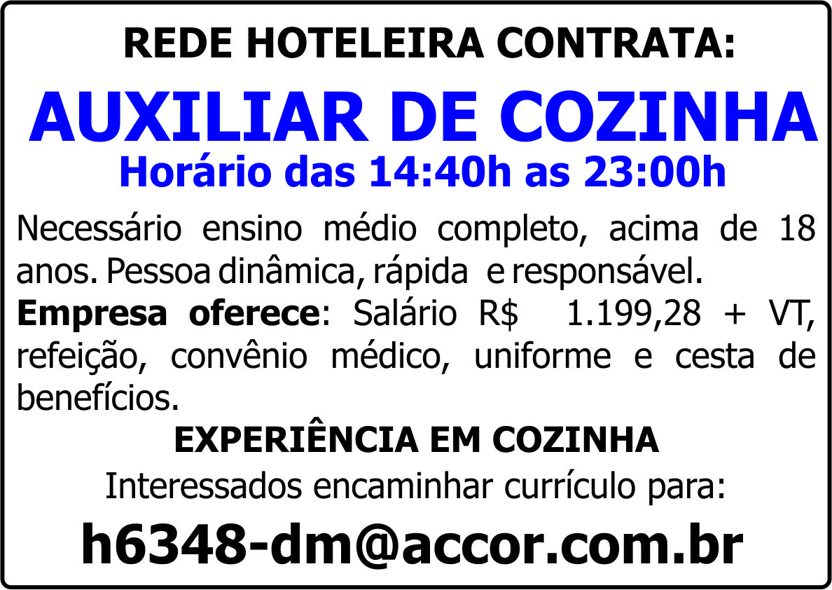 EXPERIÊNCIA EM COZINHA Enviar currículo: