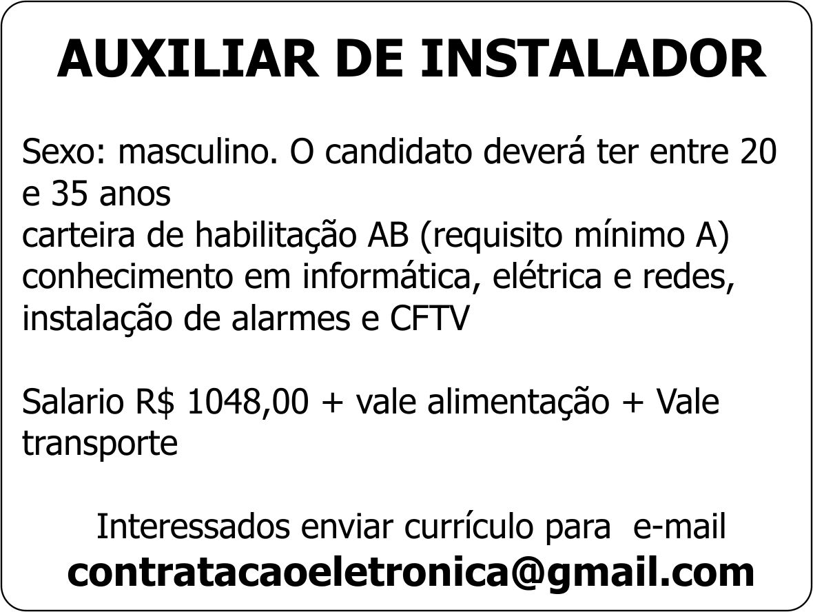 conhecimento em informática, elétrica e redes, instalação de alarmes e CFTV