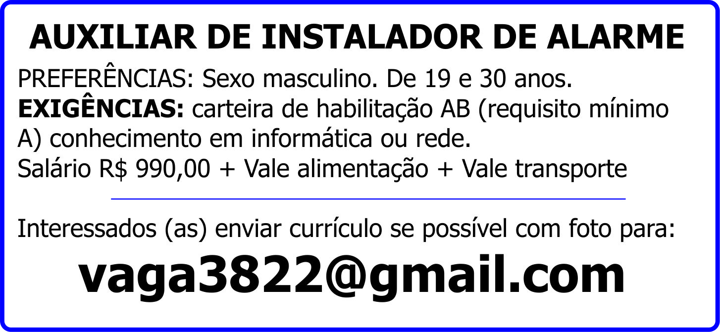 EXIGÊNCIAS: carteira de habilitação AB (requisito mínimo A) conhecimento em informática ou rede.