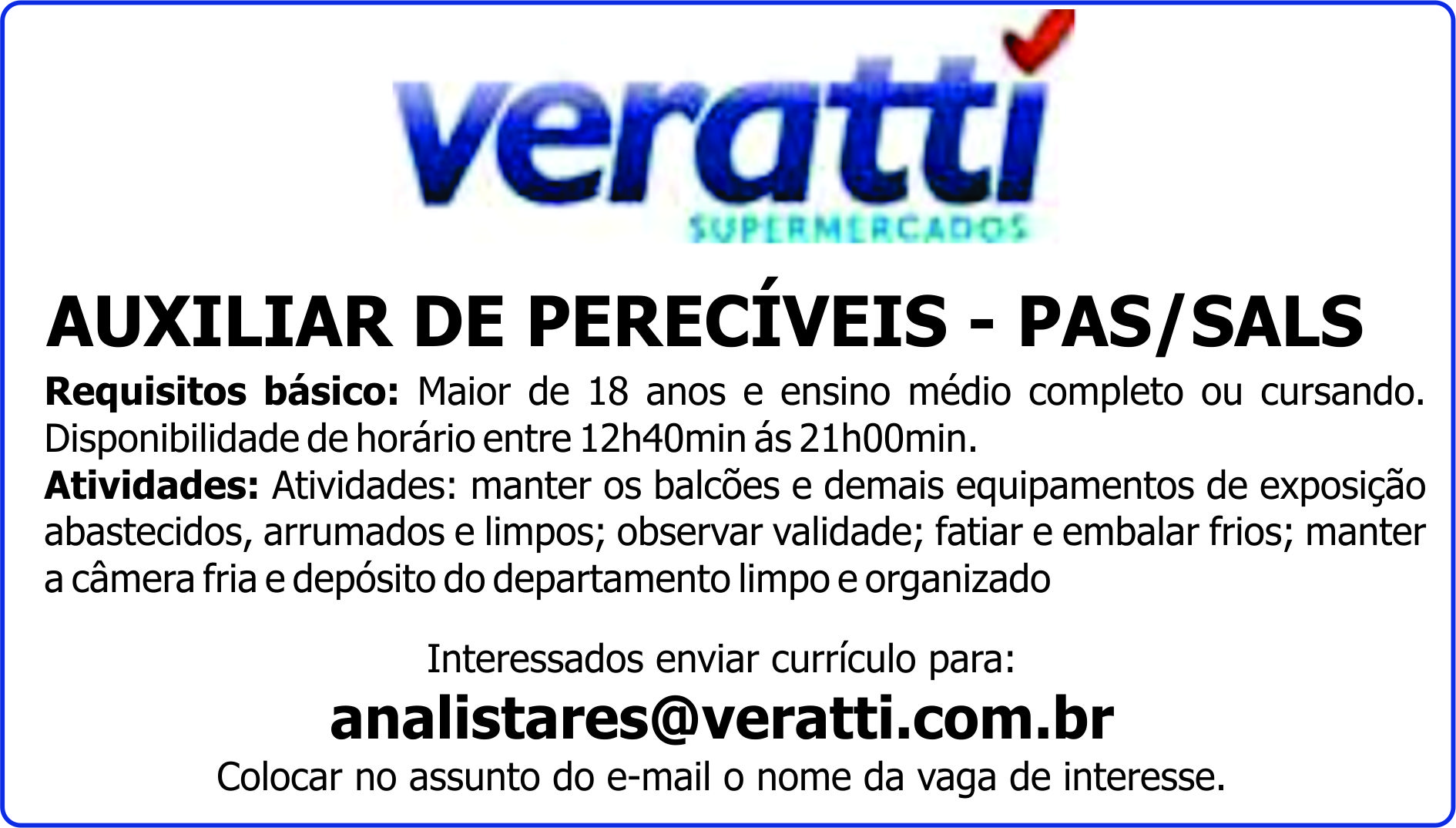 Atividades: Atividades: manter os balcões e demais equipamentos de exposição abastecidos, arrumados e limpos; observar validade; fatiar e embalar frios; manter a câmera fria e depósito do departamento limpo e organizado Enviar currículo:
