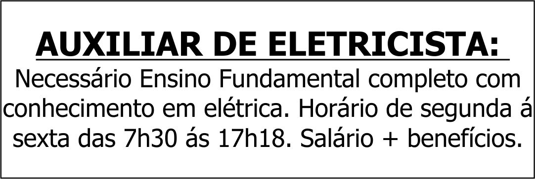 Necessário Ensino Fundamental completo com conhecimento em elétrica.