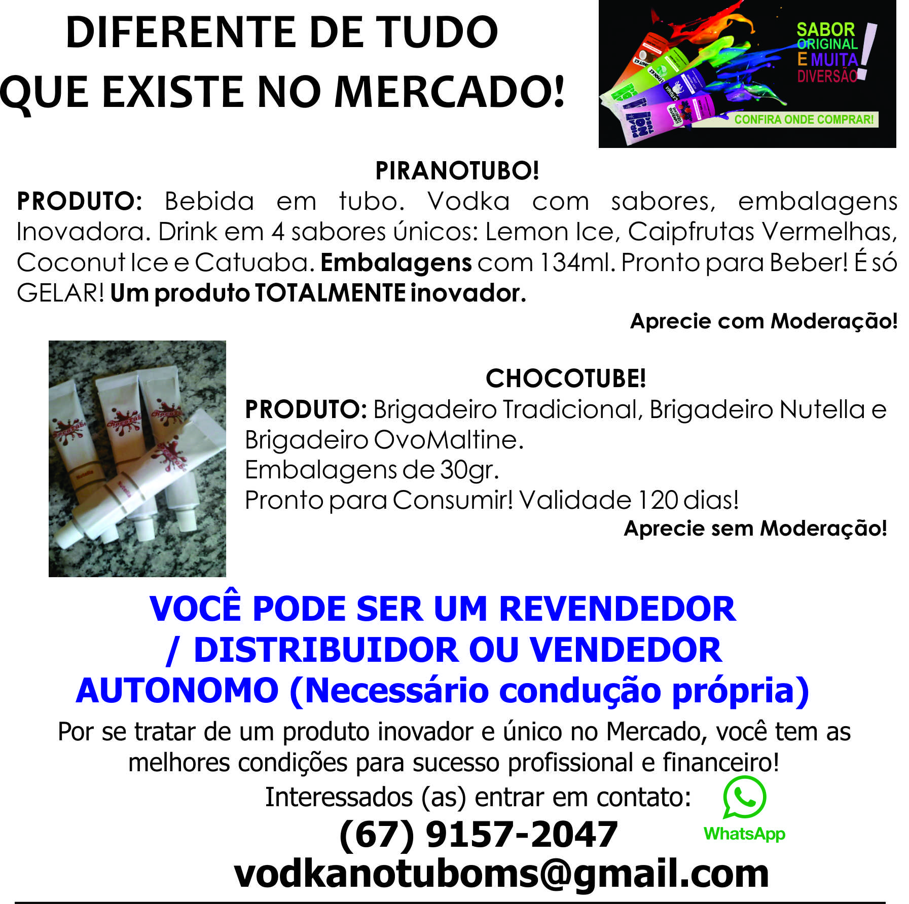 PRODUTO: Bebida em tubo. Vodka com sabores, embalagens