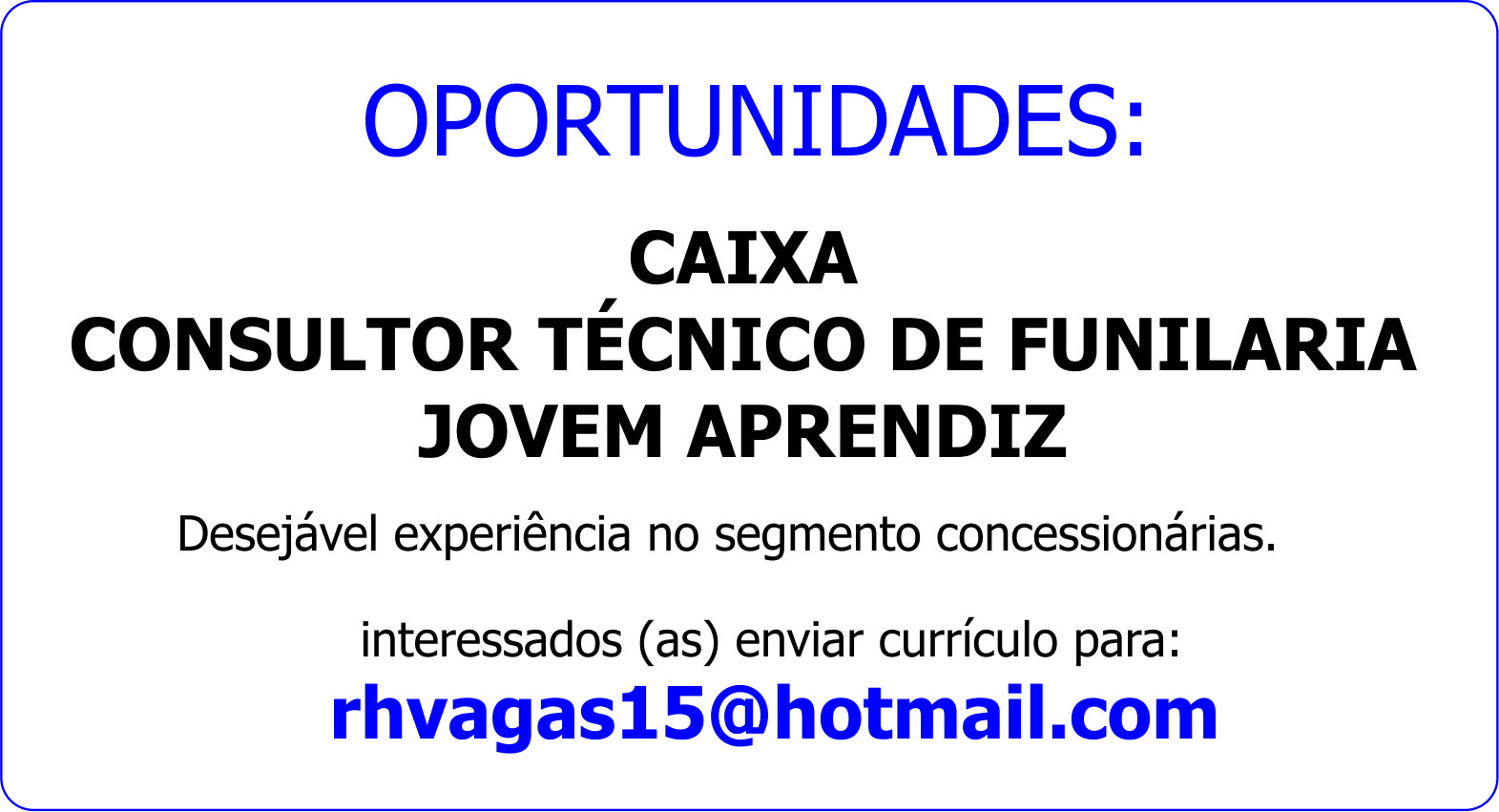 CAIXA / CONSULTOR TÉCNICO DE FUNILARIA / JOVEM APRENDIZ: