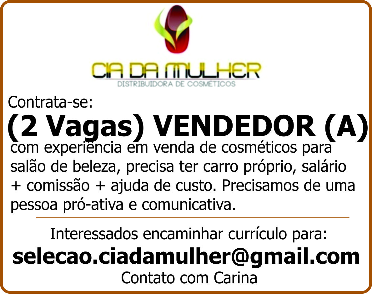 Cia da Mulher - (2 Vagas) VENDEDOR (A)