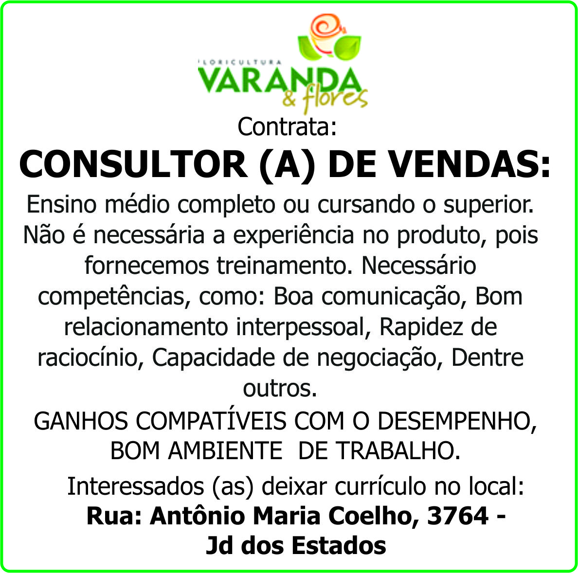 Interessados (as) deixar currículo no local: Rua: Antônio Maria Coelho, 3764 - Jd dos Estados