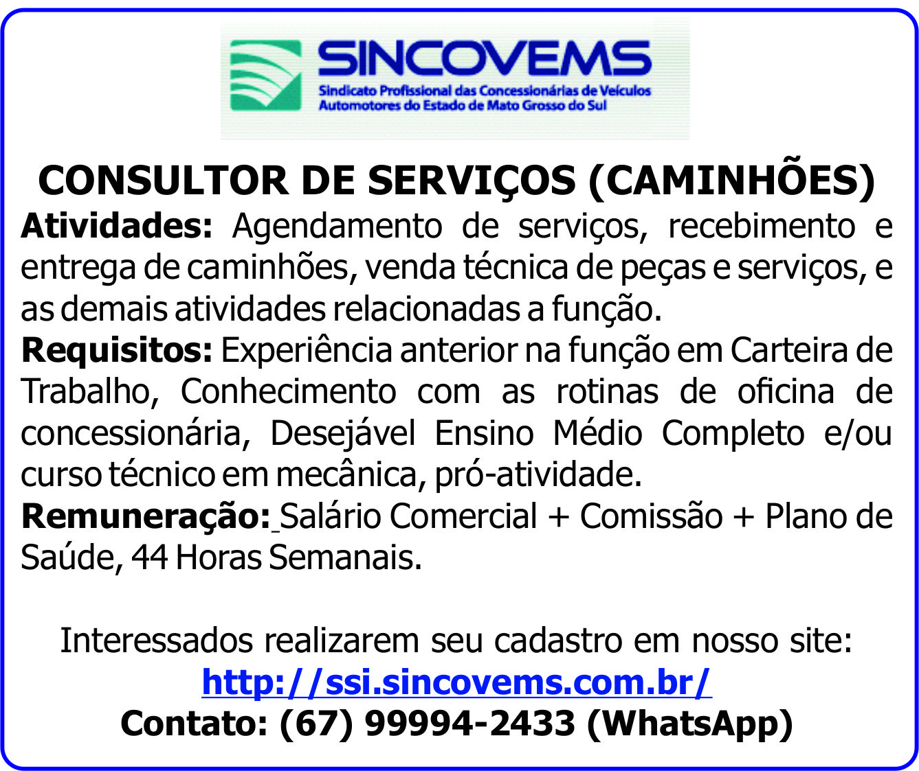 CONSULTOR DE SERVIÇOS (CAMINHÕES)