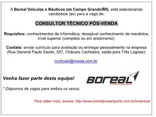 Boreal Veículos e Náuticos em Campo Grande/MS, está selecionando candidatos (as) para a vaga de: