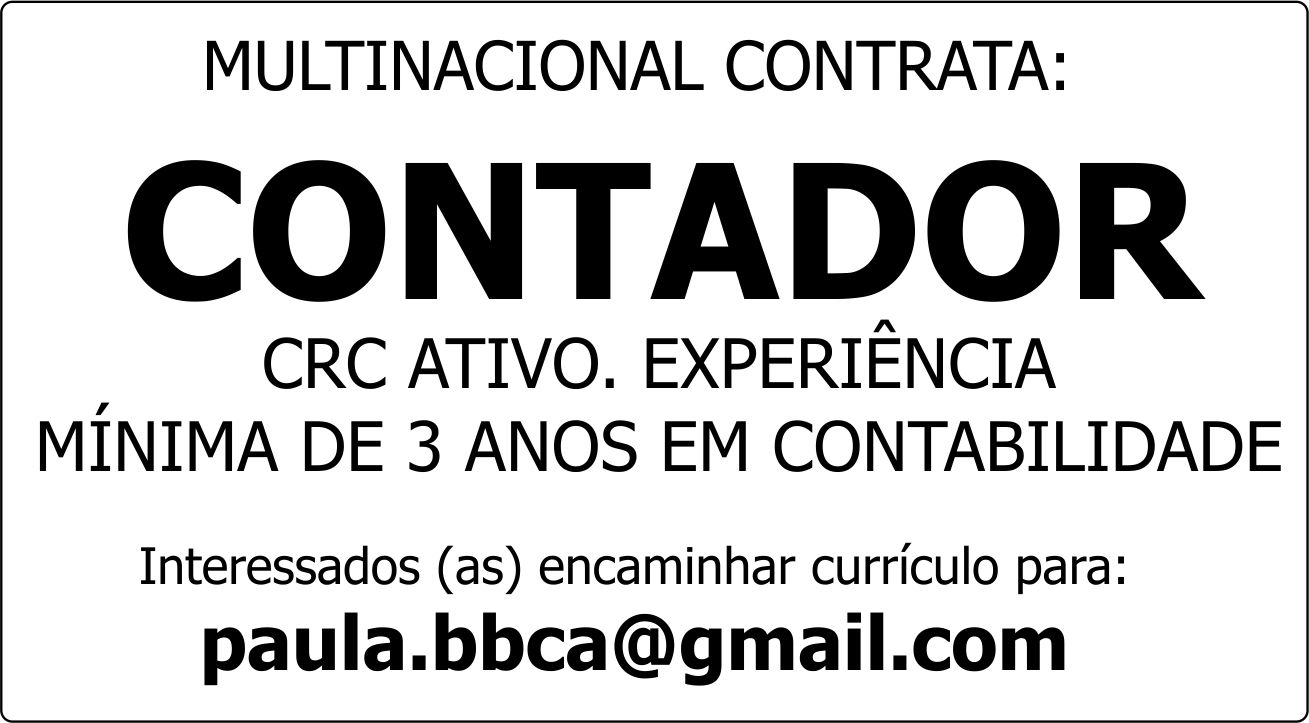 CRC ATIVO. EXPERIÊNCIA MÍNIMA DE 3 ANOS EM CONTABILIDADE