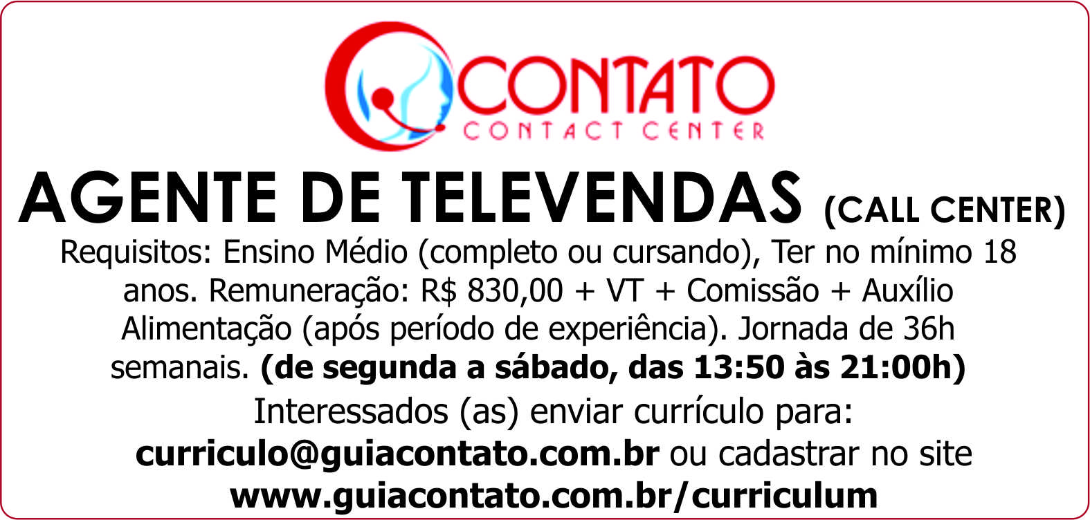 Contato Contact Center - Agente de Televendas (Call Center)