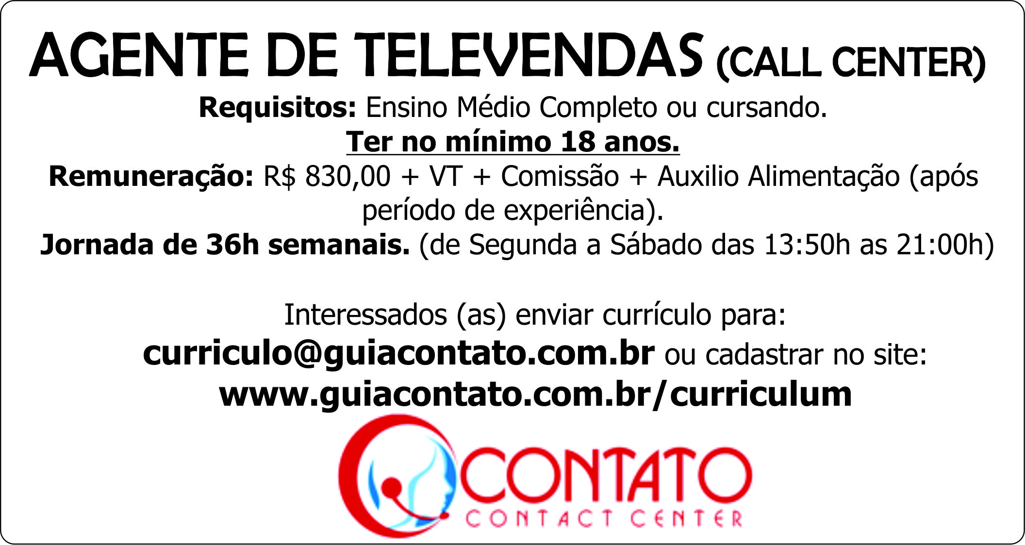 Interessados (as) enviar currículo para: [email protected] ou cadastrar no site: www.guiacontato.com.br/curriculum