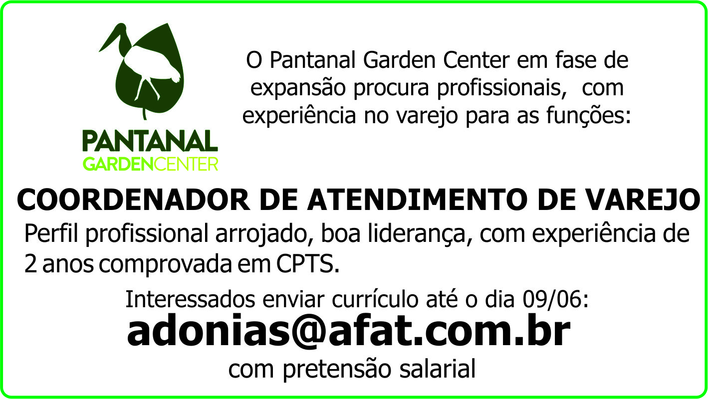 Interessados enviar currículo até o dia 09/06: