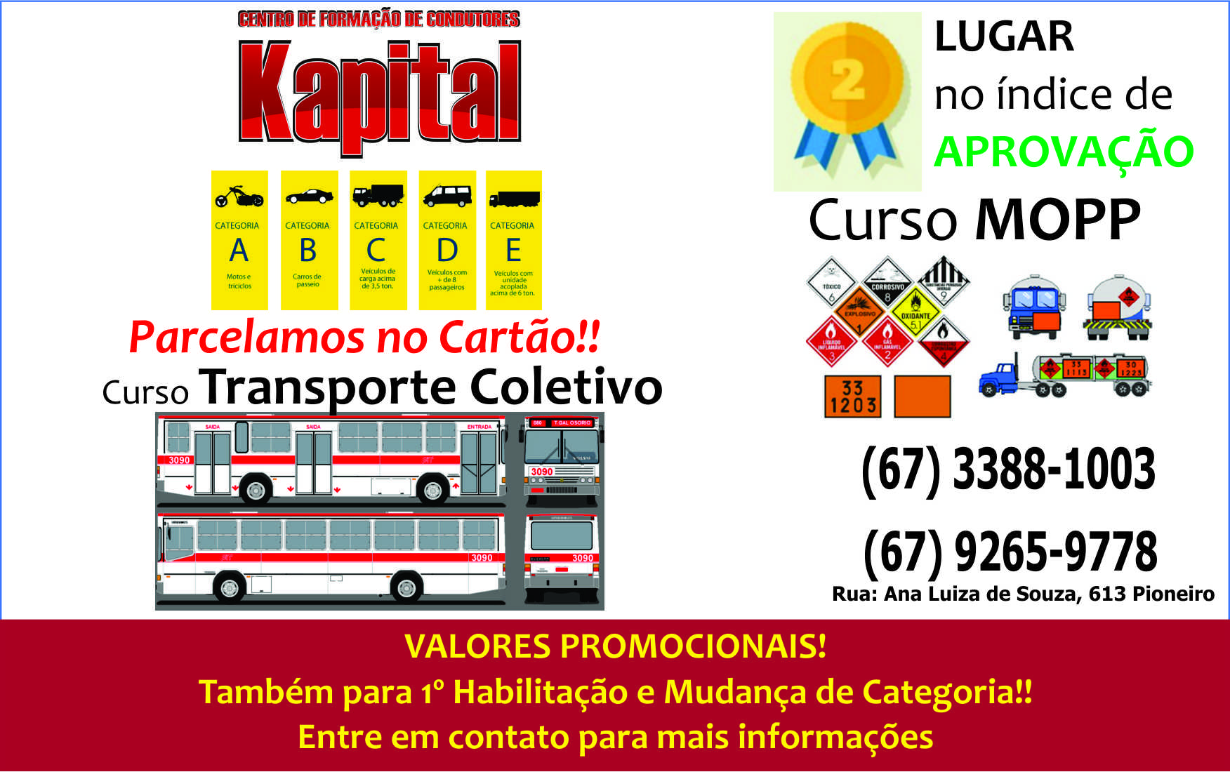 Cursos: MOPP - Transporte Coletivo - 1º Habilitação - Mudança de Categoria - Auto Escola Kapital com valores PROMOCIONAIS: