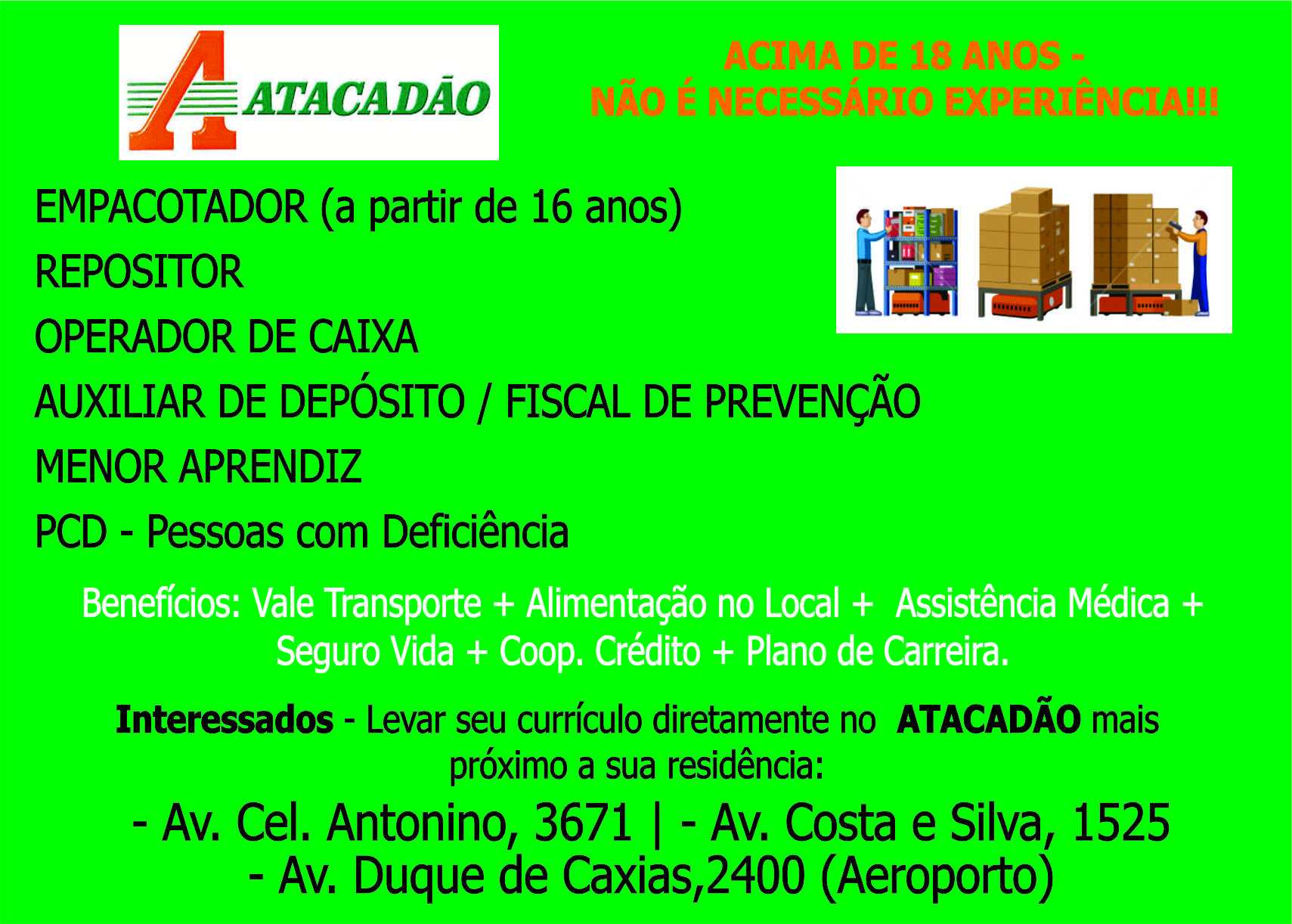 Interessados - Levar seu currículo diretamente no ATACADÃO mais próximo a sua residência: