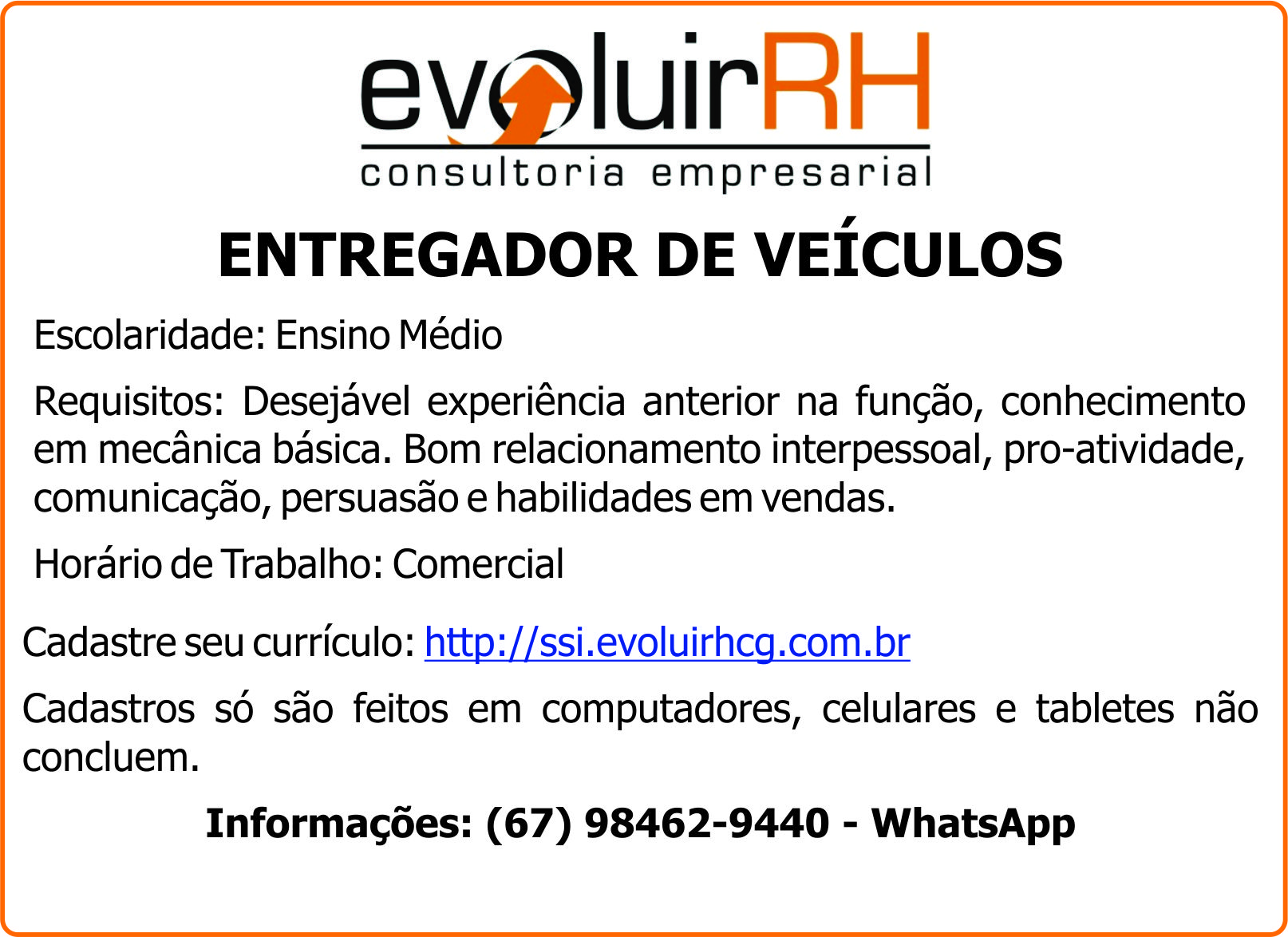 Cadastre seu currículo: http://ssi.evoluirhcg.com.br