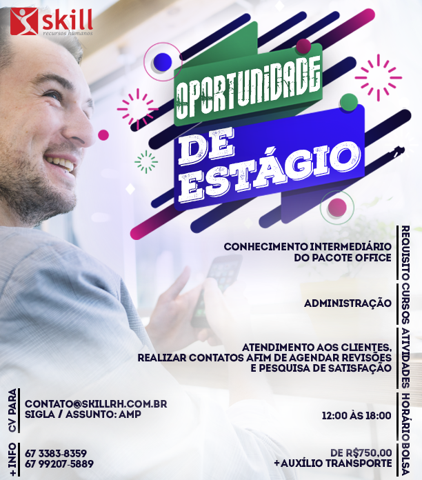 ESTÁGIO ADMINISTRAÇÃO (BOLSA R$ 750,00 + AUXILIO TRANSPORTE - MEIO PERÍODO):