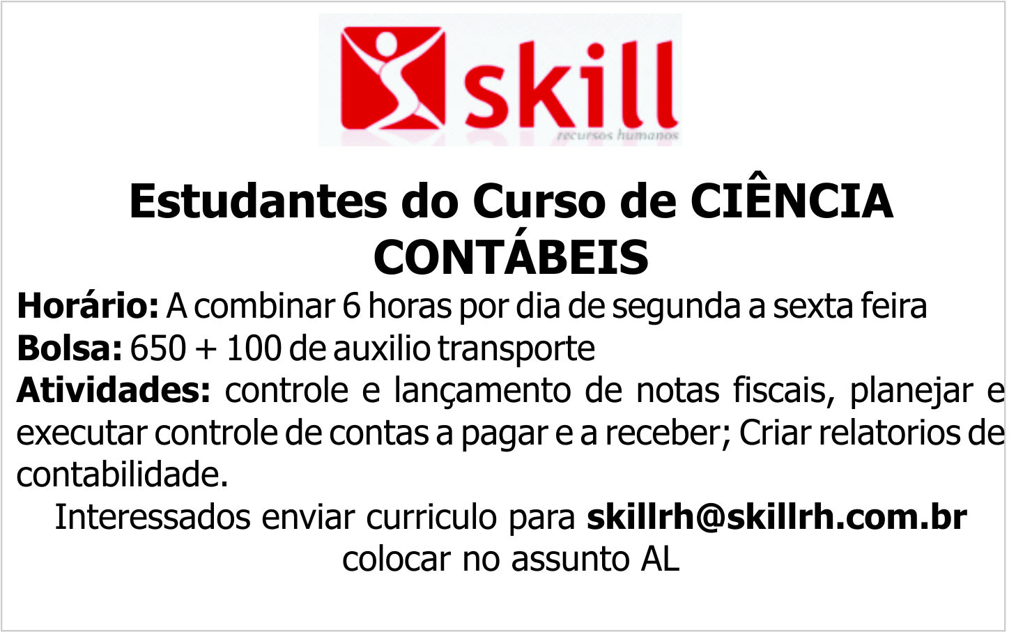 Interessados enviar curriculo para [email protected] colocar no assunto AL