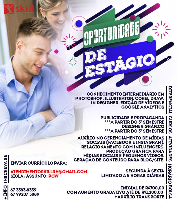 ESTÁGIO PUBLICIDADE E PROPAGANDA / DESIGNER GRÁFICO (A PARTIR DO 3º SEMESTRE):