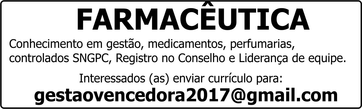 Conhecimento em gestão, medicamentos, perfumarias, controlados SNGPC, Registro no Conselho e Liderança de equipe.