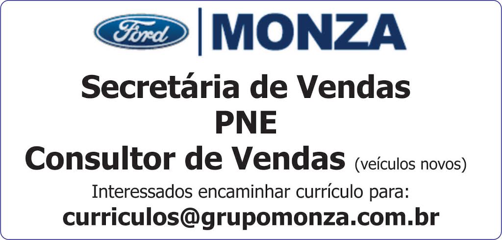 Ford Monza - Secretária de Vendas / PNE / Consultor de Vendas