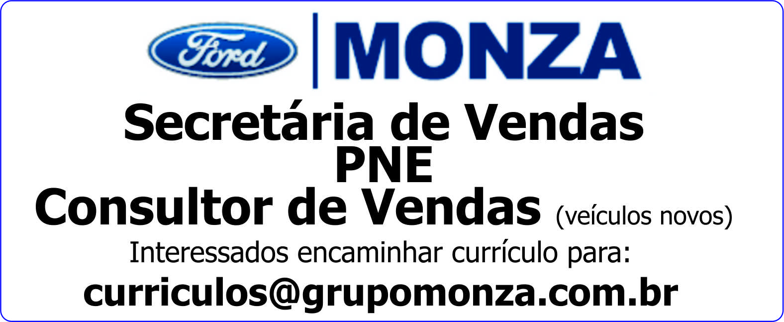 Ford Monza - Secretária de Vendas / PNE / Consultor de Vendas