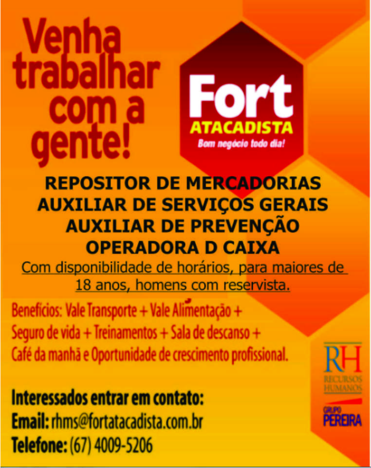 Fort Atacadista - Repositor de Mercadorias / Auxiliar de Serviços Gerais / Auxiliar de Prevenção / Operador de Caixa