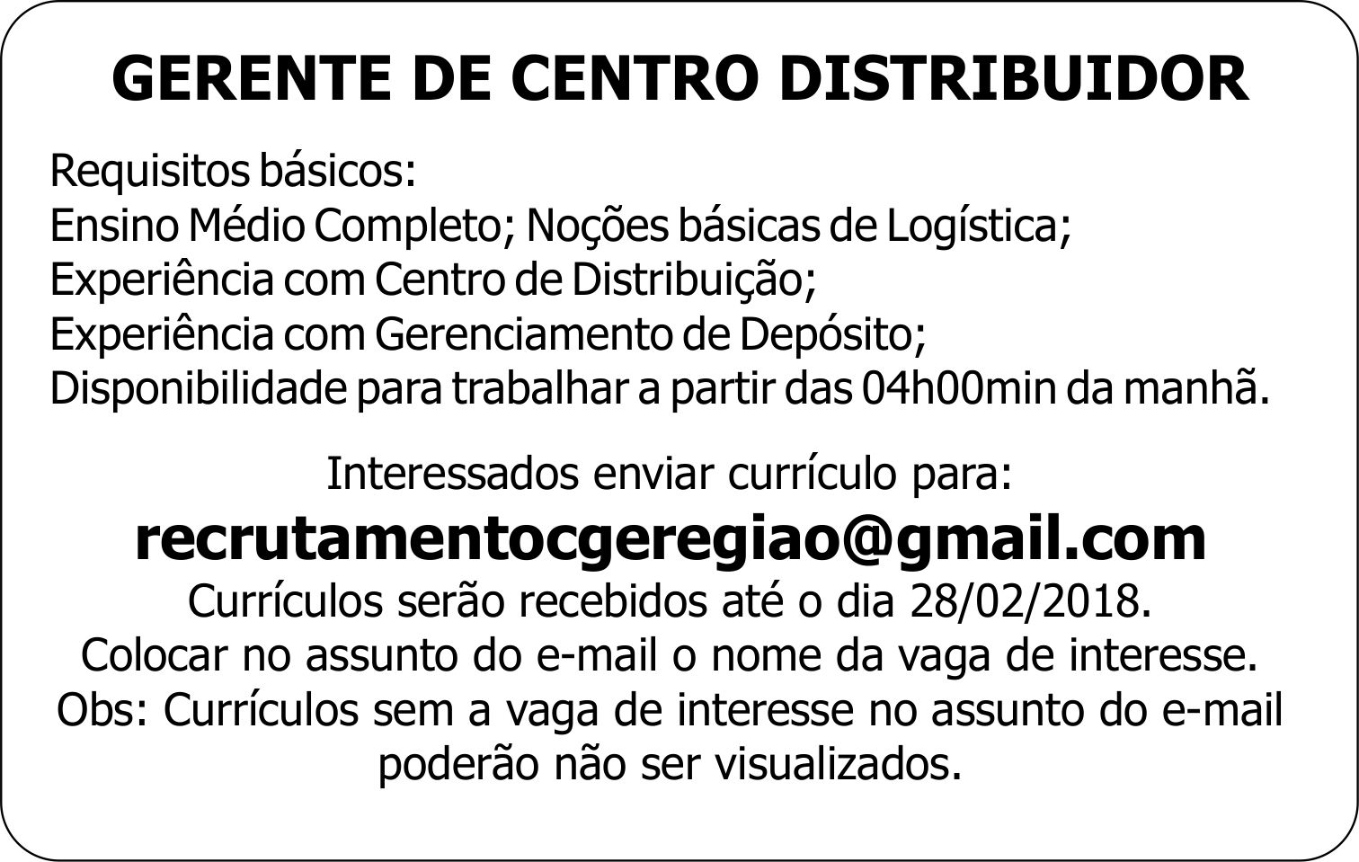 Obs: Currículos sem a vaga de interesse no assunto do e-mail poderão não ser visualizados.