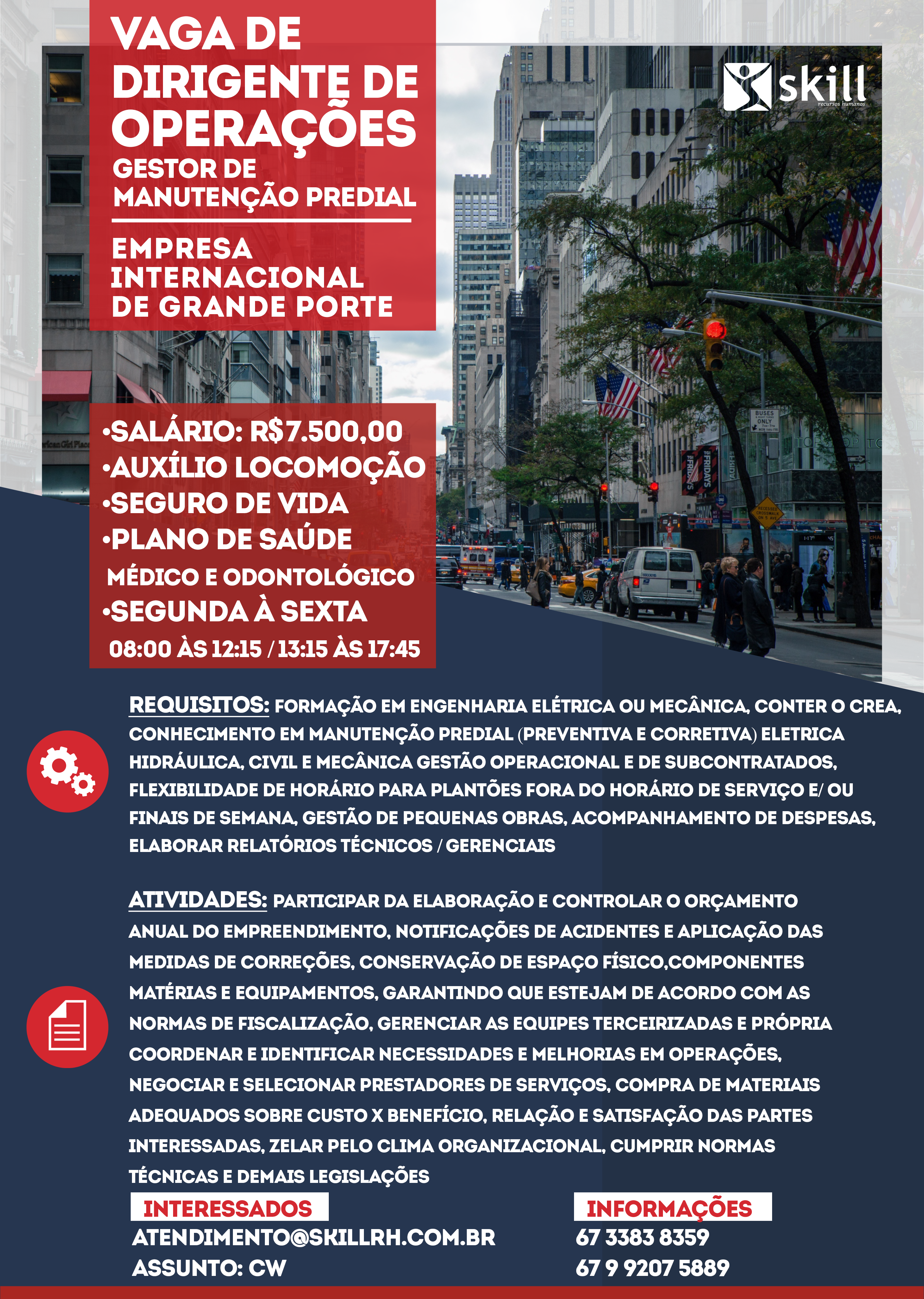 GESTOR DE MANUTENÇÃO PREDIAL (SALÁRIO R$7.500,00 + Benefícios):